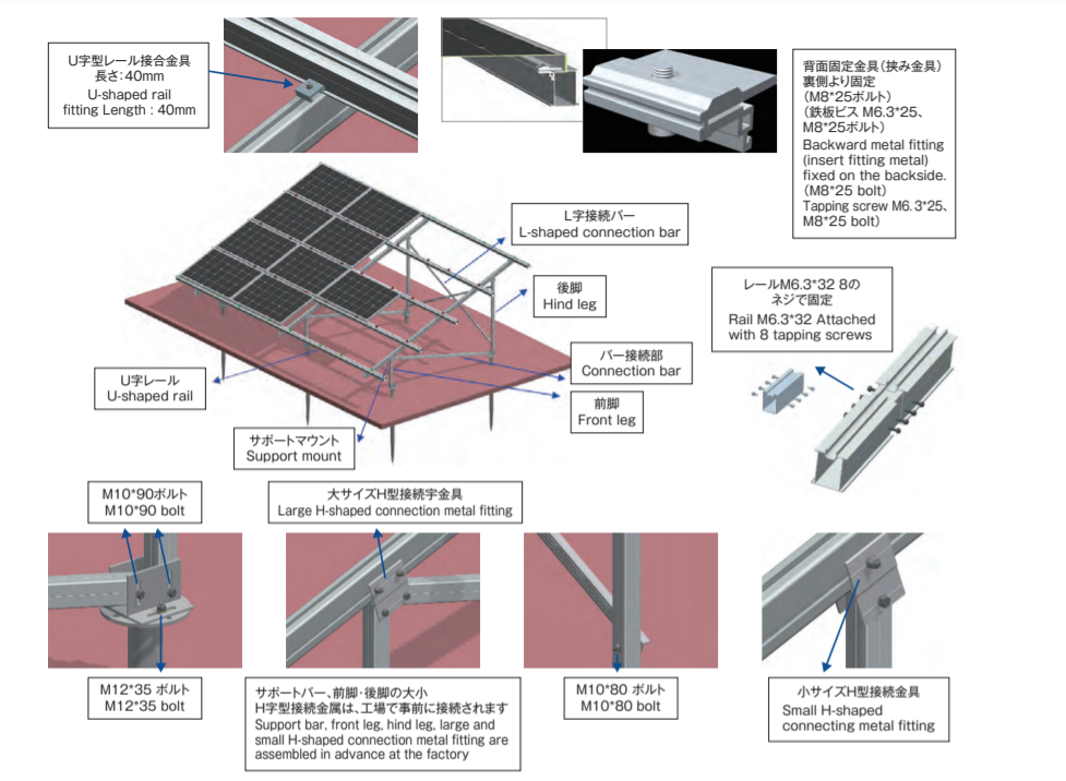 A total of 162 solar cells were installed in 9 units with 18 solar cells per unit. The wiring is kept in the cable rack (W=200) to improve the appearance.
