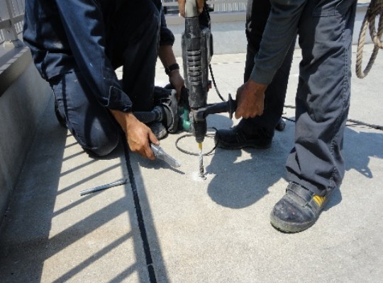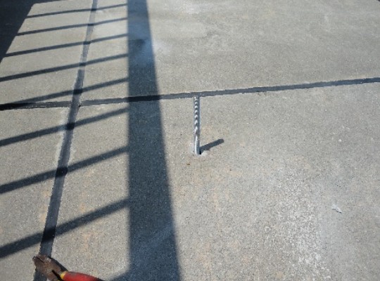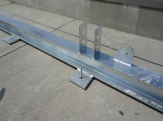 屋上はアスファルト露出防水のため、防振ゴムt5.0の上に架台ユニットを載せている。